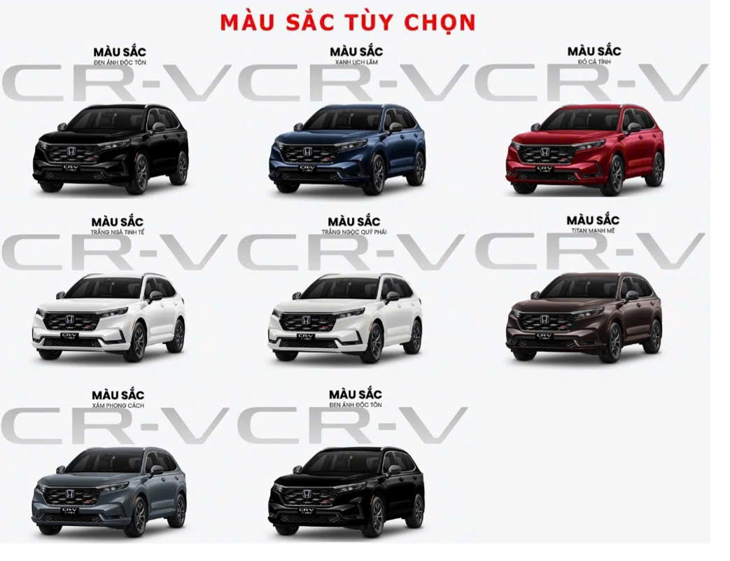 Các màu sắc tùy chọn trên mẫu xe Honda CR-V thế hệ mới