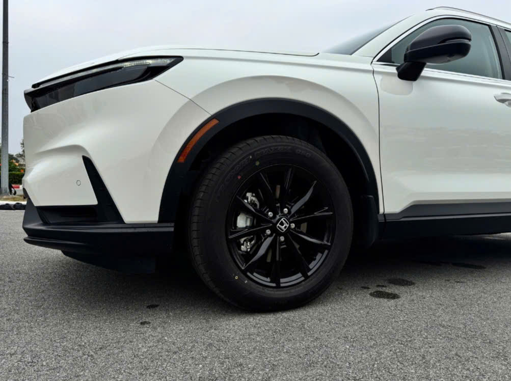 Cả 2 bản CR-V e:HEV RS & CR-V e:HEV L đều dùng La-zăng hợp kim kích thước 18 inch đa chấu kết hợp với lốp 235/60 sơn đen. Bản RS trông thể thao hơn với vòm bánh và tấm ốp cản dưới sơn màu đen bóng, khác với trước đây sơn cùng màu thân xe. Bản L dùng nhựa nhám ở dưới và không có đèn sương mù sau.